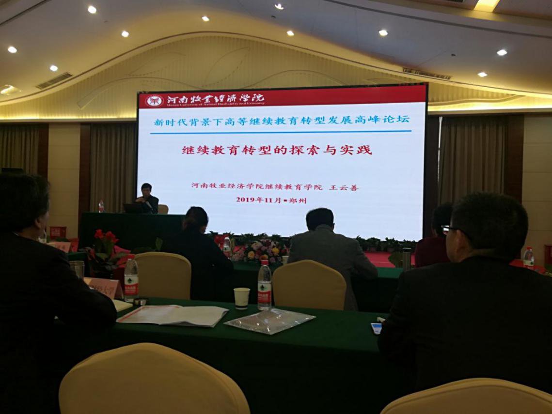 为切实践行“不忘初心、牢记使命”主题教育,根据学院安排,11月8——9日,欧冠官方网站入口副院长王云善带队参加了在郑州市举办的“新时代背景下高等继续教育转型发展高峰论坛”。会议由河南省继续教育学会主办,来自新疆财经大学、玉林师范学院、郑州大学、河南大学等省内外80多所高校的150多名代表参加了大会。
