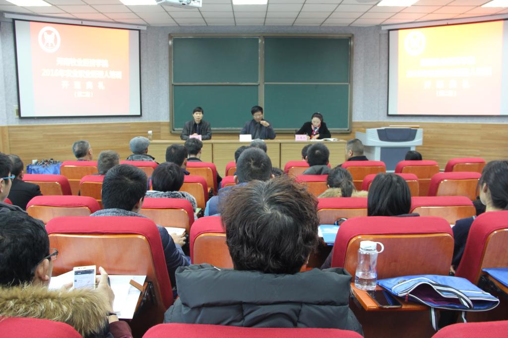 11月29日上午,欧冠官网承办的河南省2016年农业职业经理人培训班开班典礼在教学楼A200如期举行。欧冠官方网站入口院长杨炳学、副院长王慧杰、王云善以及来自省内各地县区的120名学员参加了开班典礼。仪式由欧冠官方网站入口副院长王慧杰主持。