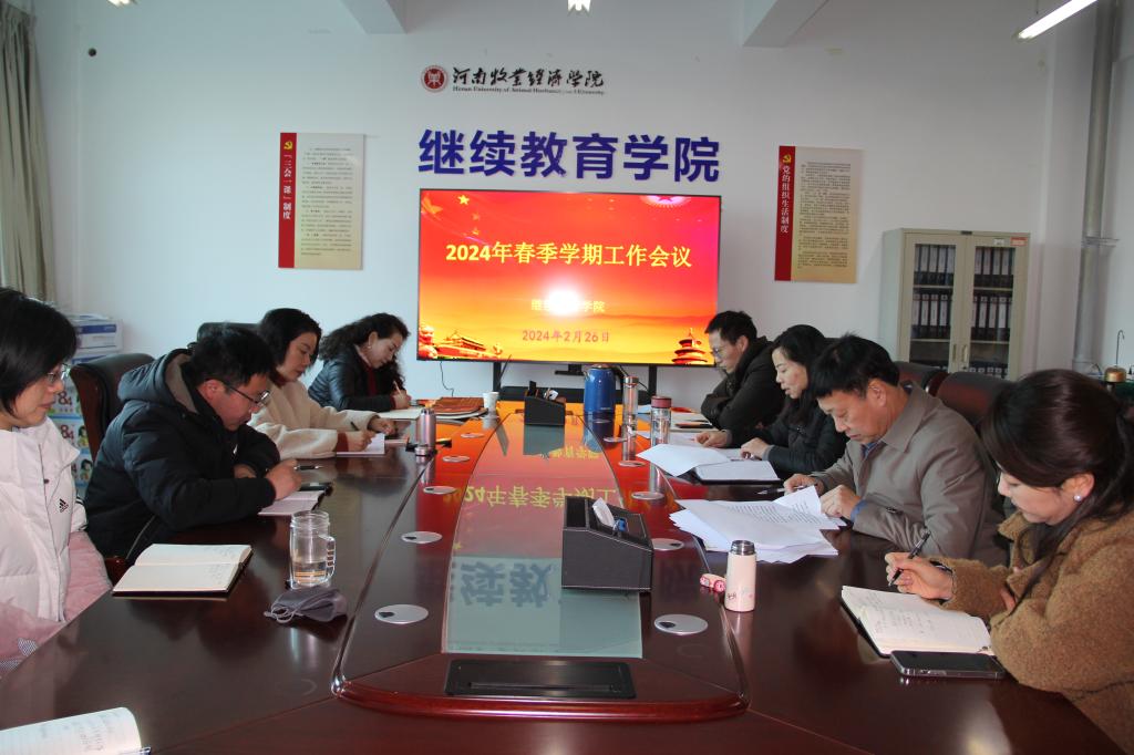 院长宋平对欧冠官方网站入口2023年工作和寒假开展的工作进行了总结和回顾,并根据2024年中央1号文件、2024年河南省政府工作报告、河南省2024年教育工作会议精神,结合欧冠官网2024年党政工作要点和学院实际,分析了我国继续教育面临的形势任务,对学院2024年工作重点进行了详细讲解。他指出:一是要提早谋划,持续推进。要结合学校党政工作要点和目标任务,做好开学初各项准备工作,细化责任分工,加强统筹协作,逐级推动落实,在党建工作、科研创新、教育教学、培训等方面持续发力,提质增效;二是要改变作风、转变观念。要深刻认识到脚踏实地、求真务实是做好各项工作的重要保障,善于摒弃固化思维,在工作创新、教学改革、服务社会等方面持续强化学习、提升能力、改进作风,切实增强工作的主动性、科学性与预见性,进一步解放思想、追求实效,把落实整改作为推动工作、加快发展的具体行动,增强继续教育服务供给能力;三是要坚持“大继续教育理念”,结合高等教育新的发展需求和职业教育改革要求,对标对表上级部门工作要求,不断完善体制机制,强化管理,提高团队素质,主动服务社会对继续教育需求;四是学历教育要在“精”上下功夫,校内以不断提高教育教学质量为目标,校外引进优质教育资源,提高管理和教育教学水平;五是非学历教育要在“强”字上做文章,持续贯彻落实《欧冠官方网站入口非学历教育培训管理办法》,探索对校内各类继续教育项目实行“管办分离”的管理模式,积极引导校内力量投入非学历教育培训,服务社会不同层次需求。