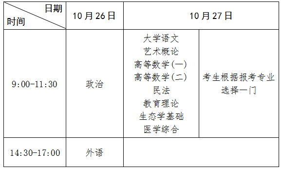 6、统考科目按教育部《全国各类成人高等学校招生复习考试大纲》(2011年版)的要求命题。所有统考试科目每科试题满分均为150分;高起本、高起专的统考科目每门考试时间为120分钟,专升本的统考科目每门考试时间为150分钟。