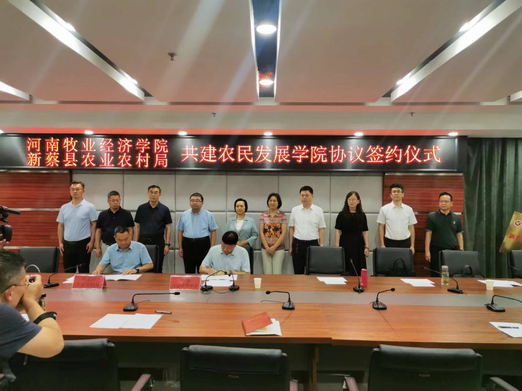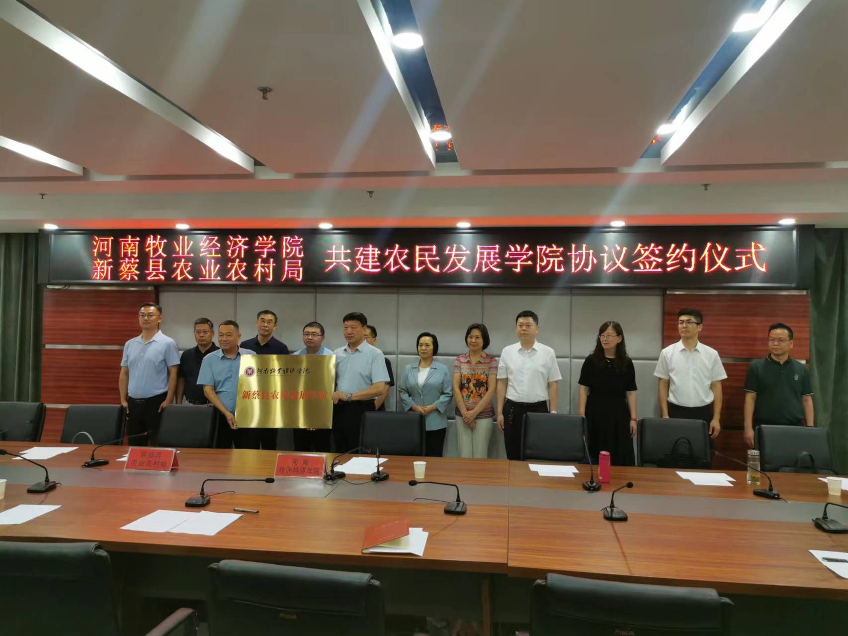6月20日,校长尹新明、校党委副书记杨志清带队赴新蔡县开展校地结对帮扶工作,同新蔡县人民政府续签校地战略合作框架协议,尹校长和新蔡县副县长尹坤分别代表学校和新蔡县人民政府签订《战略合作框架协议》。欧冠官方网站入口院长宋平与新蔡县农业农村局局长李斌签订了《新蔡县农民发展学院协议书》,并向县农业农村局授予“新蔡县农民发展学院”牌匾。